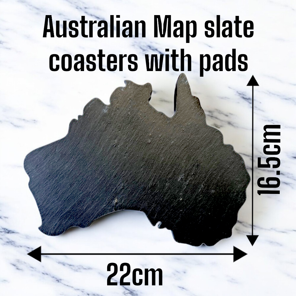 Bring a touch of sophistication and national pride to your table with these beautifully crafted slate coasters in the shape of Australia. Made from high-quality, natural slate, each coaster showcases the rugged texture and unique charm of this timeless material while offering a durable surface.