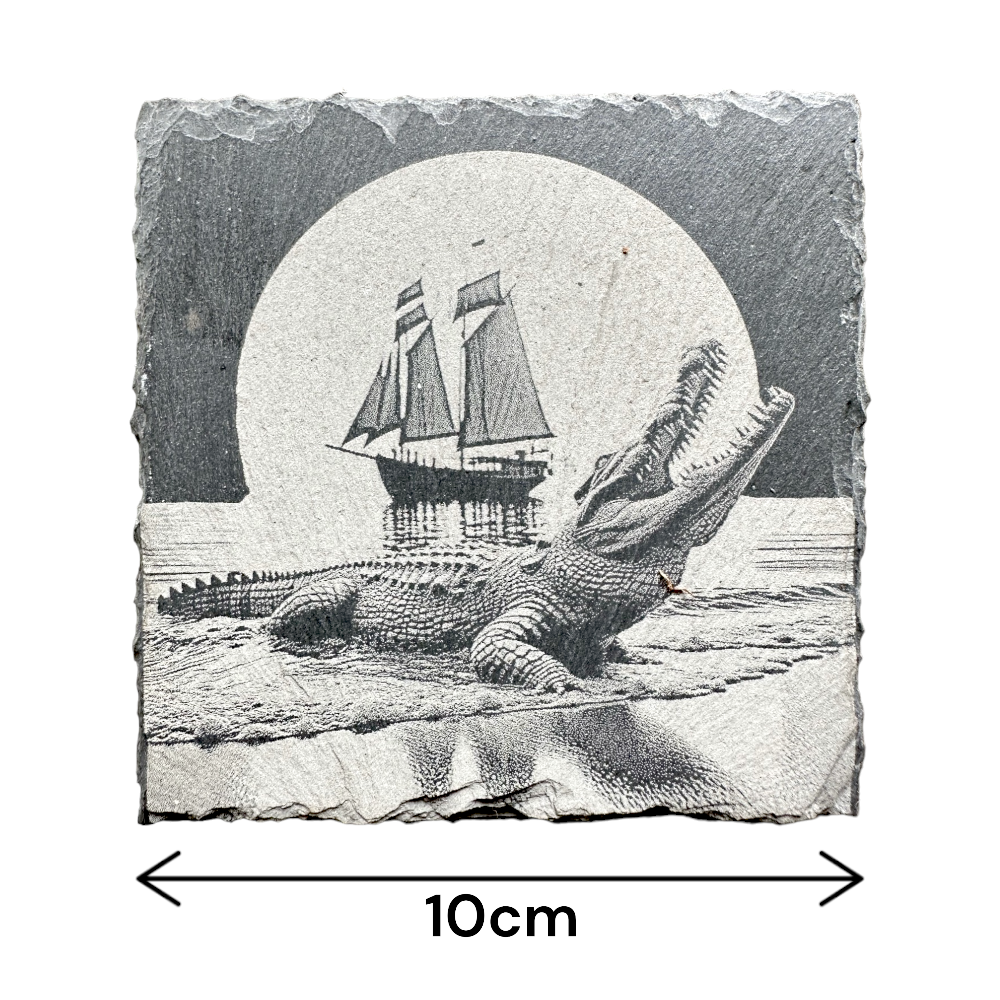 Crocodile on the mudflats slate coaster- designed and engraved in Broome, Western Australia.