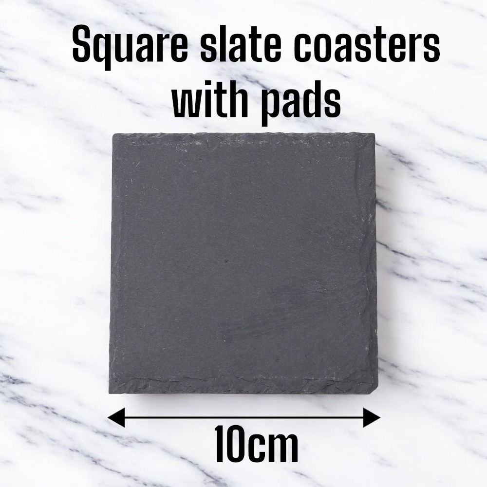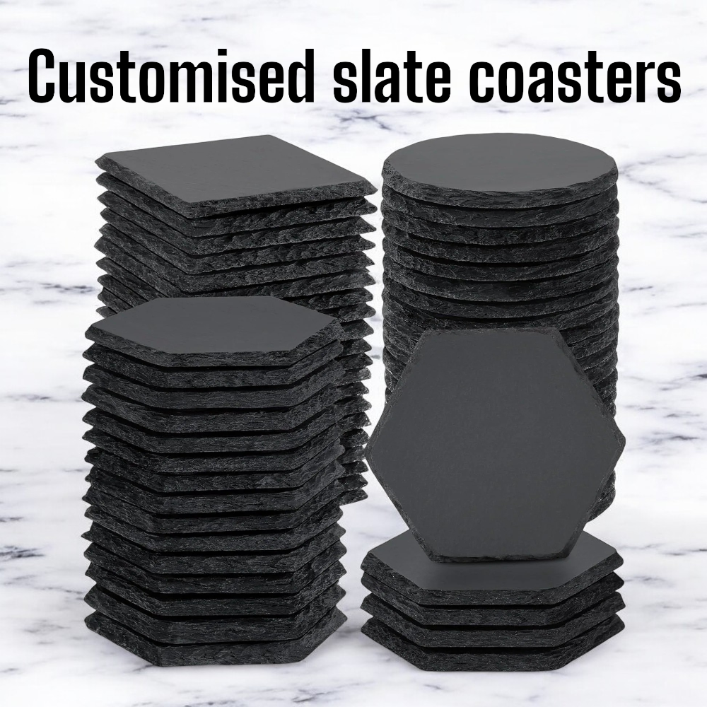 Personalised Slate Coasters – Customisable Designs in Three Shapes