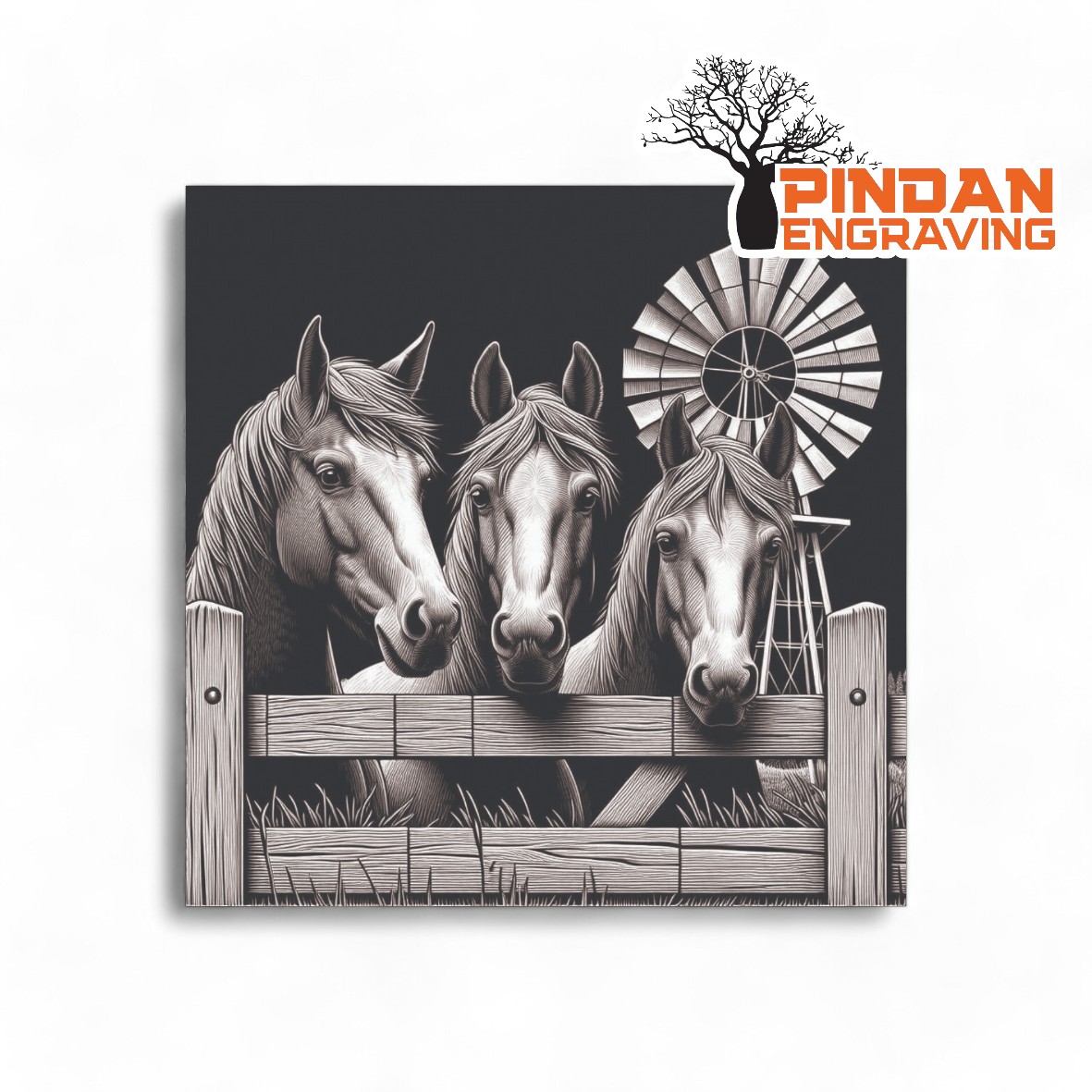 Horses looking over a fence slate coaster – designed and engraved in Broome, Western Australia.