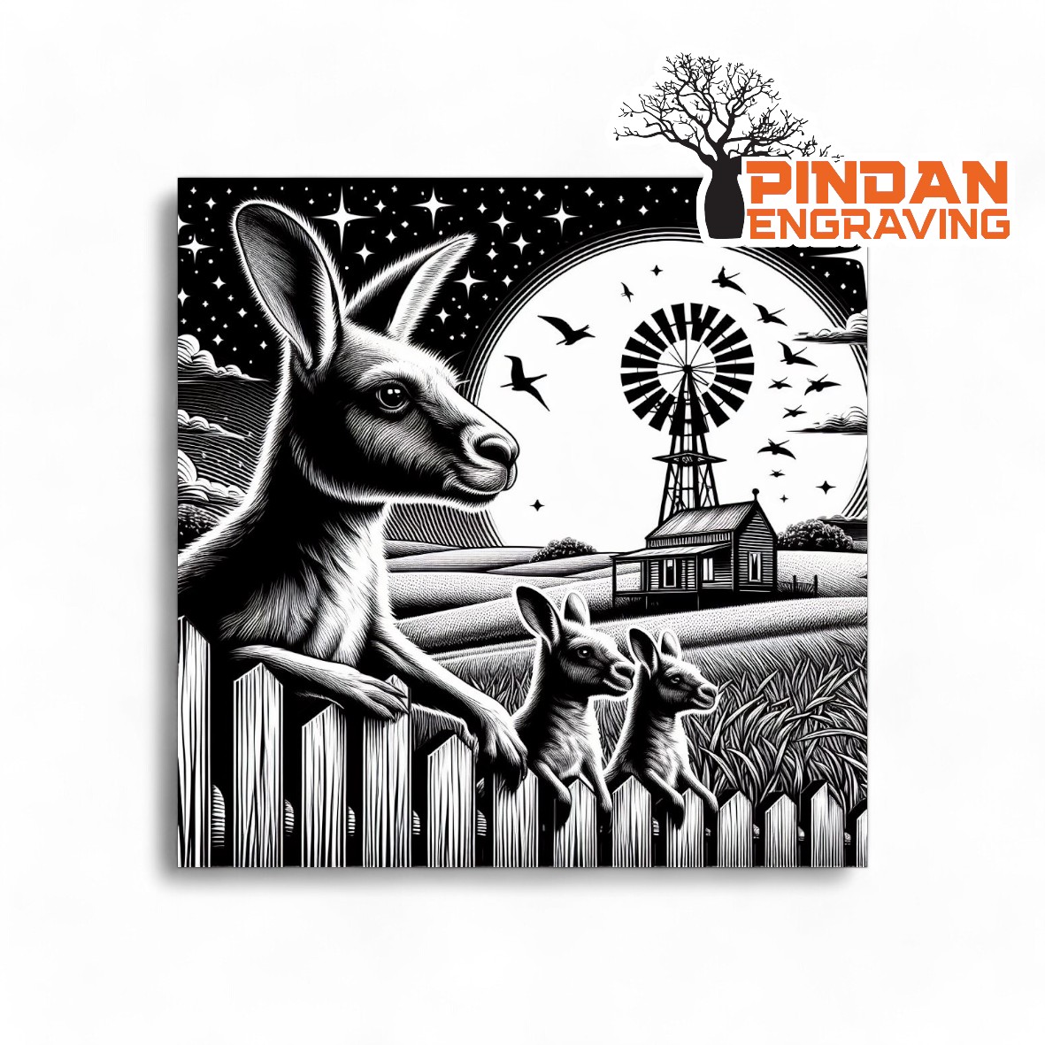 Kangaroo over a fence slate coaster – designed and engraved in Broome, Western Australia.